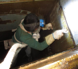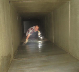 3.在人工無法進(jìn)入而且拆卸較為困難的油煙管道,可以使用開孔的方法,在油煙管道上面鑿一些小孔,通過小孔對管道內(nèi)里進(jìn)行清洗,然后對每個(gè)小孔進(jìn)行密封處理。
